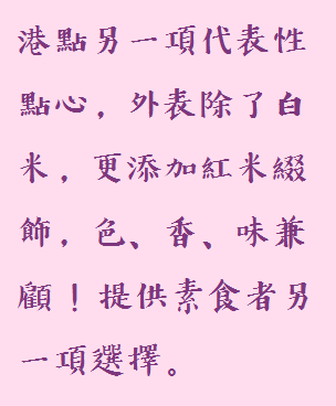 ? 成分:糯米、素肉漿(大豆、大豆油、乳清、糖、鹽、L-麩酸鈉)、高麗菜、豆薯、水、紅糯米、磷酸二澱粉、玉米粒、大豆蛋白、紅蘿蔔、香油(芝麻油、大豆油)、樹薯澱粉、香菇頭、小麥纖維、芝麻醬(白芝麻)、羥丙基磷酸二澱粉、薑、香菇高湯粉(L-麩酸鈉、鹽、麥芽糊精、胺基乙酸、5'-次黃嘌呤核苷磷酸二鈉、5'-鳥嘌呤核苷磷酸二鈉、DL-胺基丙酸、酵母抽出物、香菇抽出物、琥珀酸二鈉、關華豆膠、酵母粉、醬油、玉米糖膠、棕櫚仁油、L-天門冬酸鈉、檸檬酸鈉、二氧化矽、白菜抽出物、水解大豆蛋白、香料、紅蘿蔔抽出物、糖、維生素E【抗氧化劑】)、玉米澱粉、鹽、糖、白胡椒粉(白胡椒粒)、調味劑(麥芽糊精、糖、5'-次黃嘌呤核苷磷酸二鈉、5'-鳥嘌呤核苷磷酸二鈉、琥珀酸二鈉、小麥蛋白、L-麩酸、胺基乙酸、DL-胺基丙酸、鹽酸L-二胺基己酸、鹽、檸檬酸)